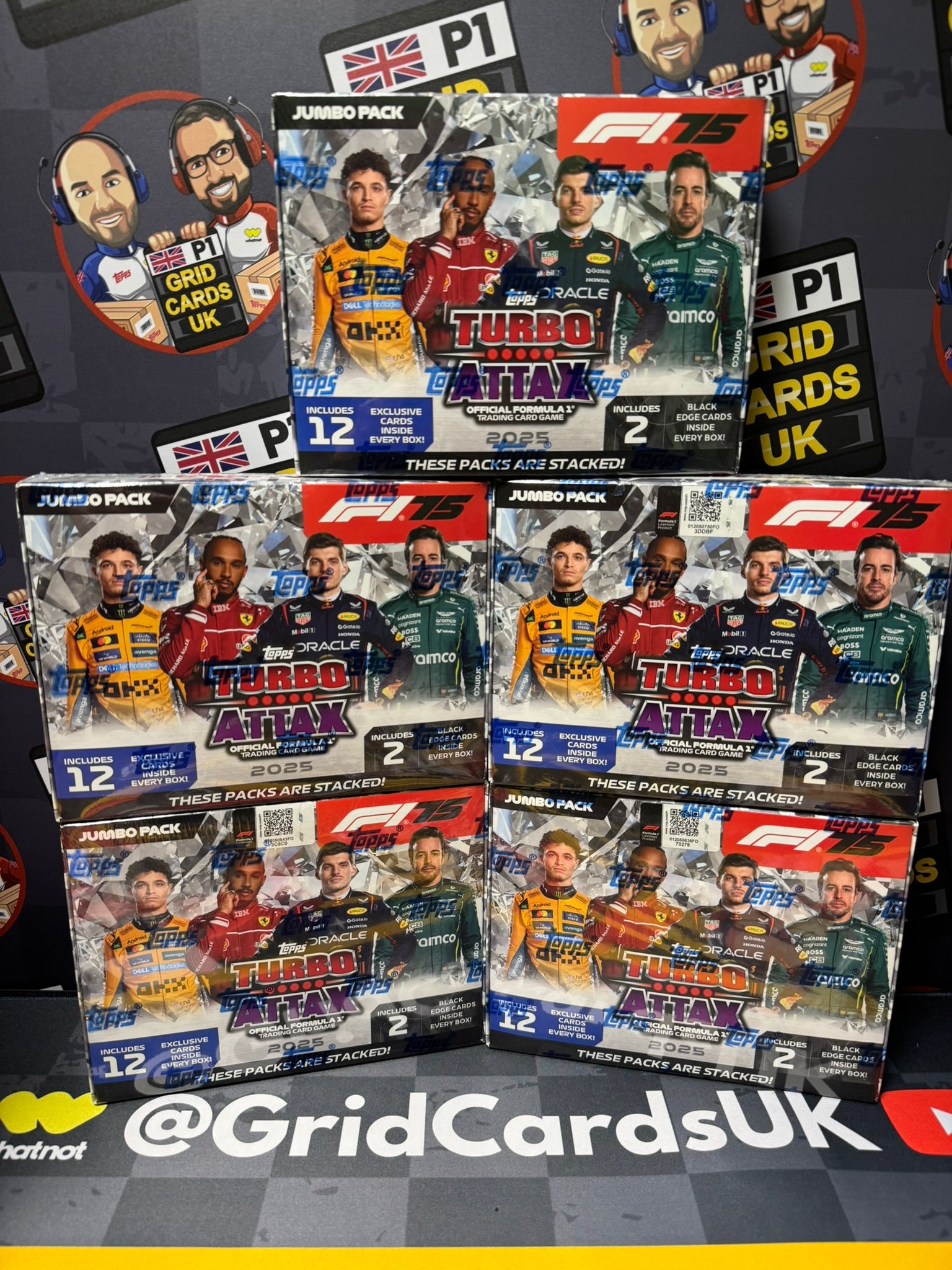 Take your F1 Turbo Attax 2025 hunt to the next level with this bundle of 5 brand-new, factory-sealed Jumbo Boxes from Topps India.