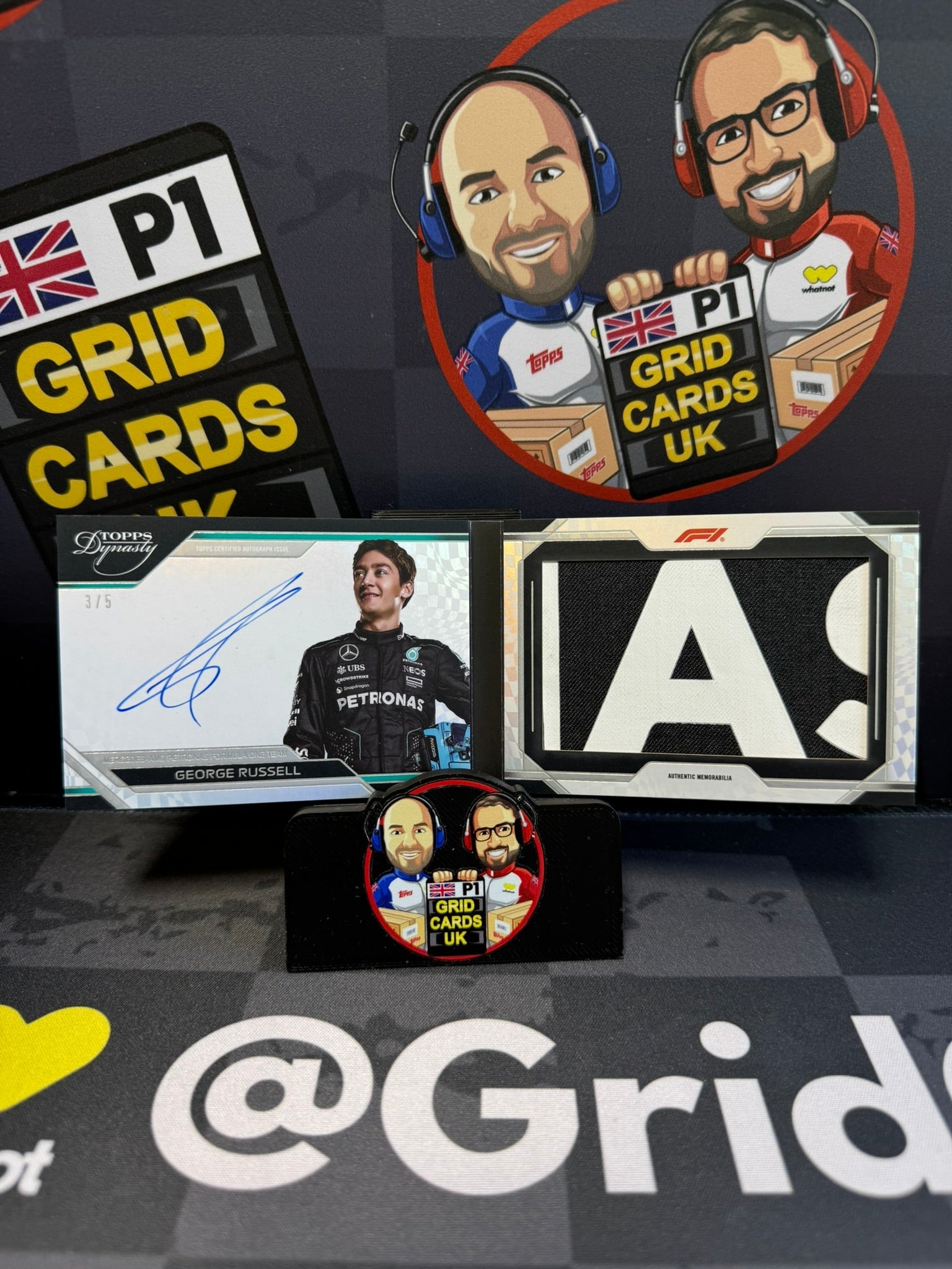 Stunning 3/5 Dynasty Relic Booklet featuring an on-card Russell autograph and premium race-used relics. One of the most desirable Russell cards of the year from Topps’ flagship high-end line.