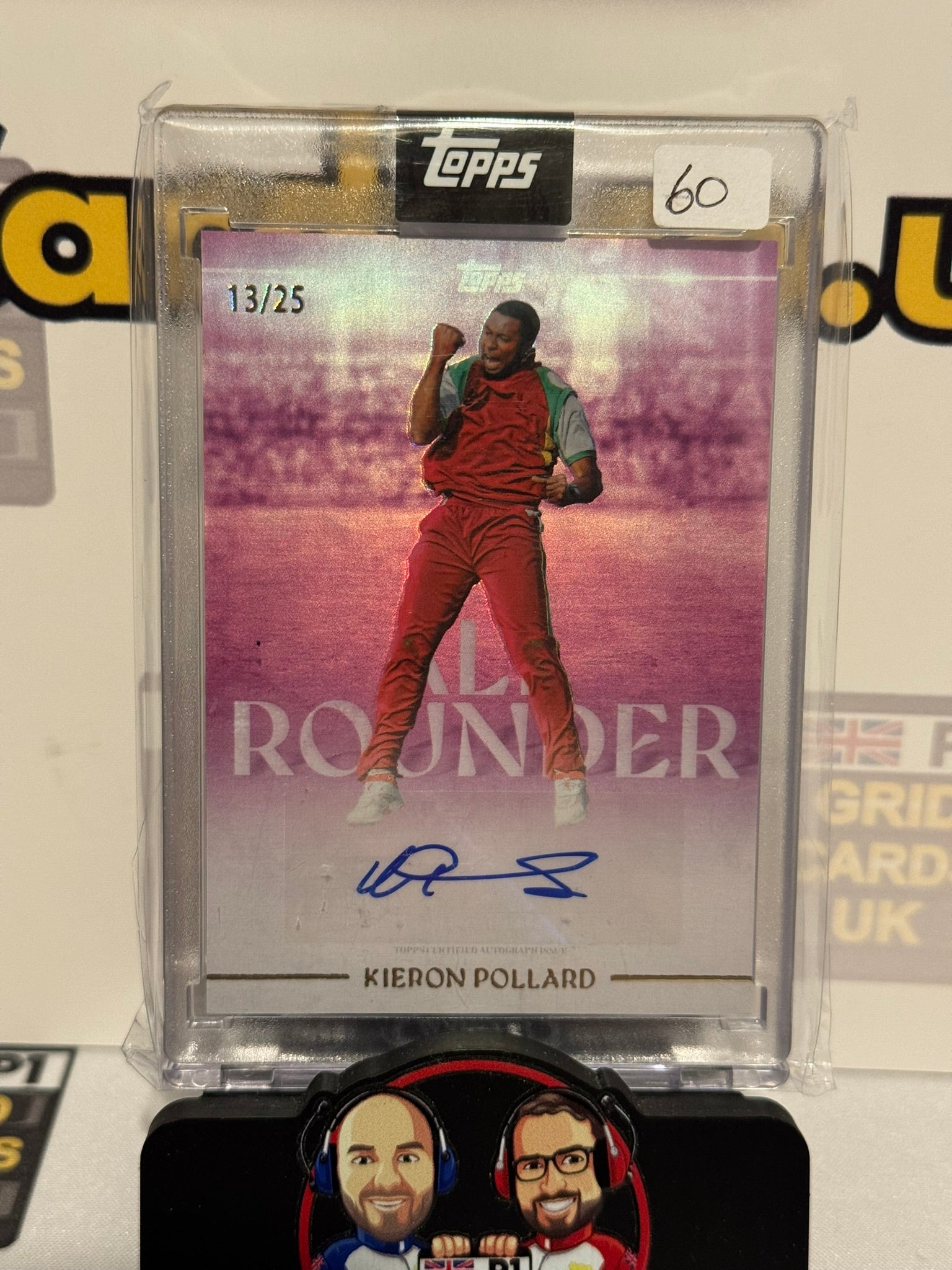 Kieron Pollard autographed Purple parallel numbered 13/25 from Topps Cricket Legends 2025.